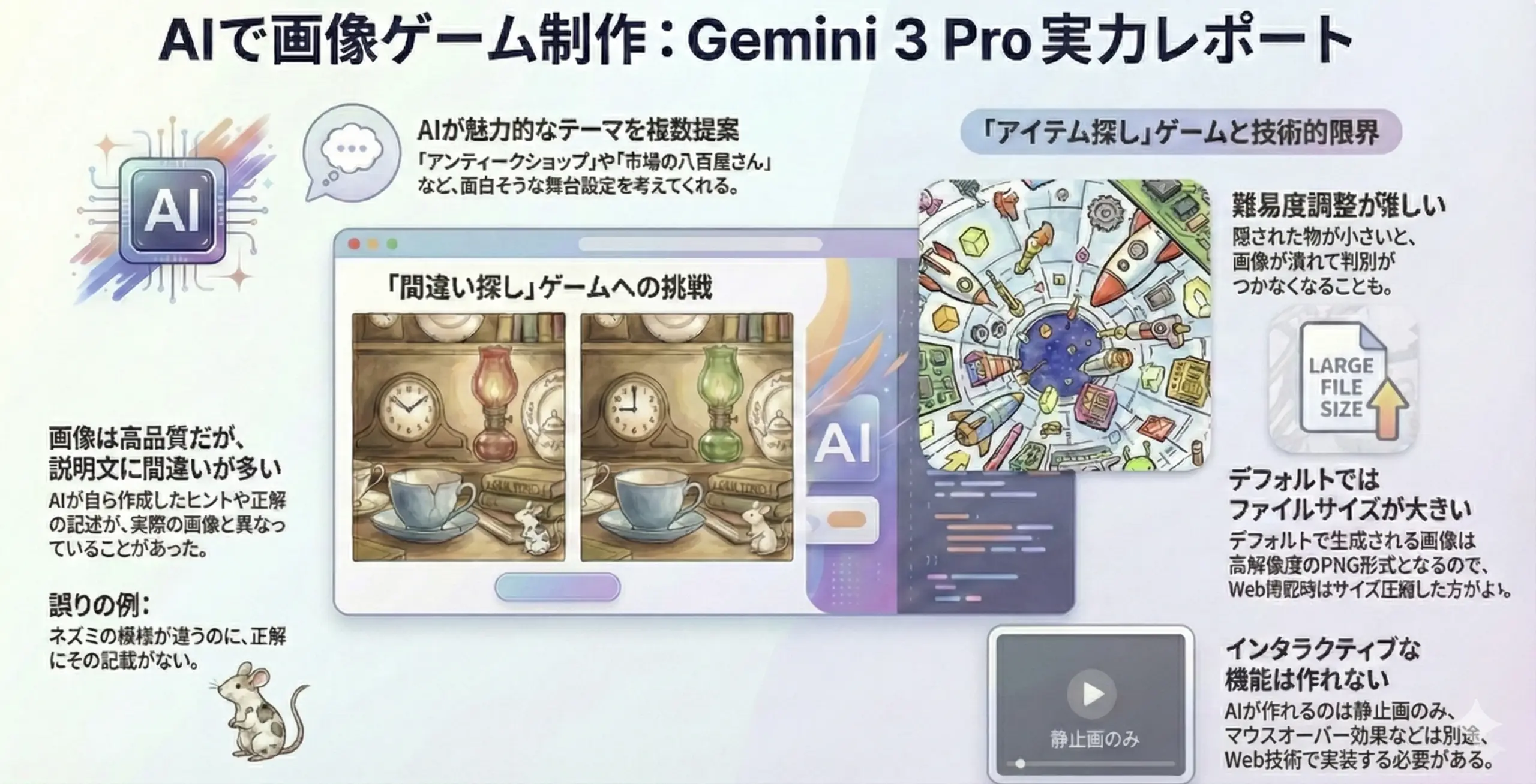 Gemini 3 Pro(NANO BANANA PRO)に、間違い探しゲームの画像を作ってもらった AI