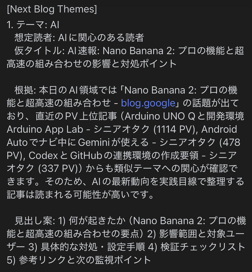 goal='次のブログ記事テーマを提案する',