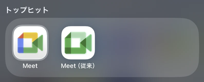 iPhoneで、”Meet”というキーワードで検索すると、添付図のように2つ出てきます。この違いを教えてください