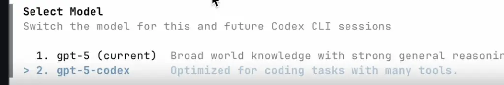 ① モデル(gpt-5 / gpt-5-codex など)を選択 →