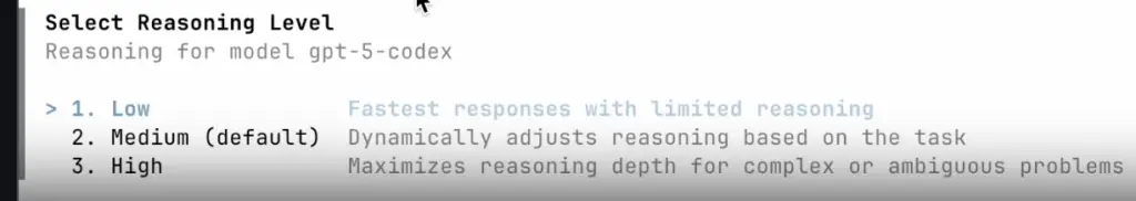 “Model changed to gpt-5-codex with high reasoning” → “…with minimal reasoning”