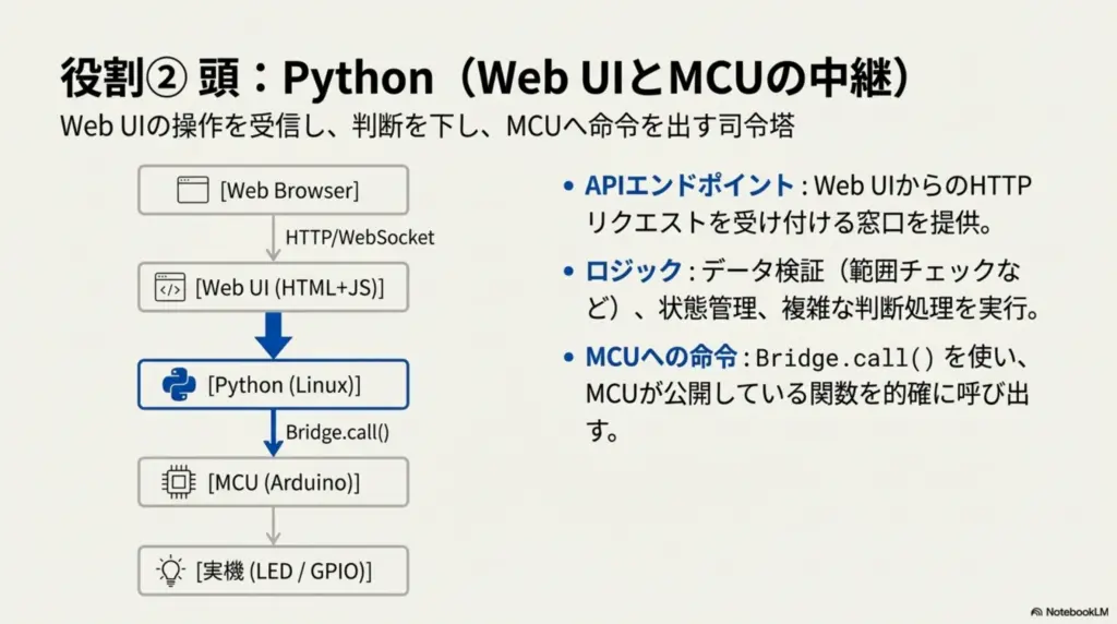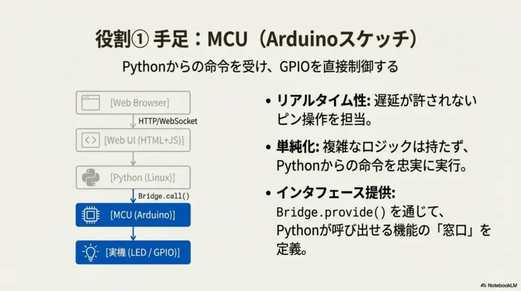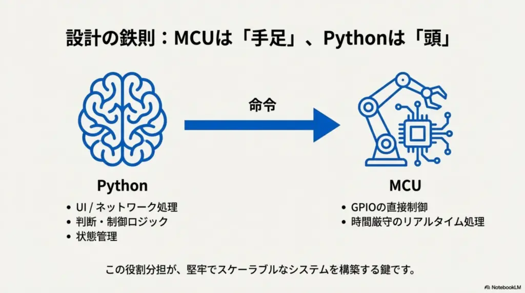 👉 MCU は「手足」、Python は「頭」