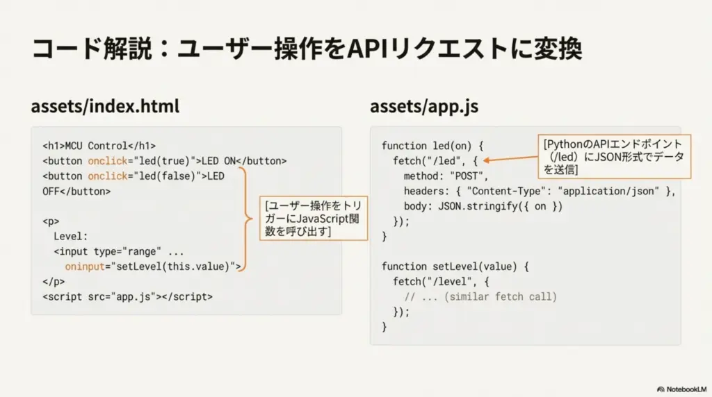 「Web UI から MCU を操作する“完全に動く最小~実用例”」です。