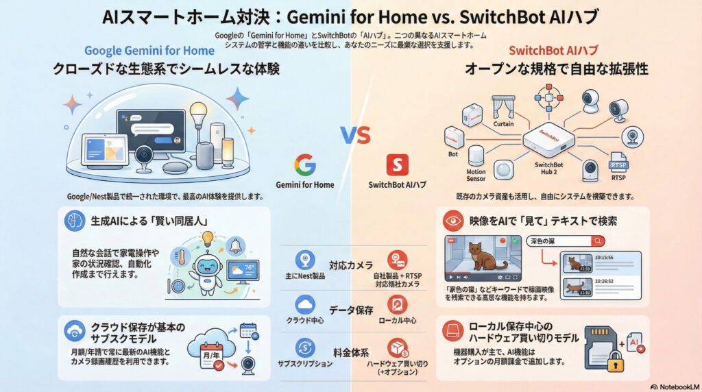 カメラ関連のAI/履歴検索ができる装置として、SwitchBotの「AI ハブ」が発売されていますが、これとの違いを詳細に教えてください