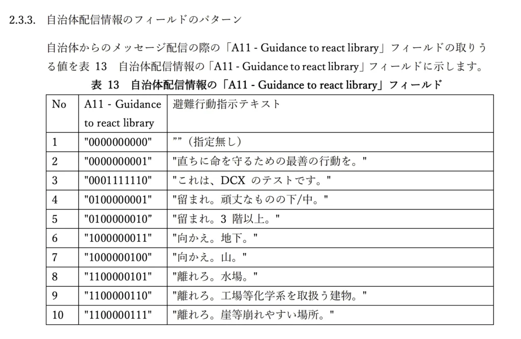 • 仕様書(IS-QZSS-DCR / IS-QZSS-DCX-003)のどこを読めば「地域判定」や「優先度判定」に必要なフィールドが取れるか