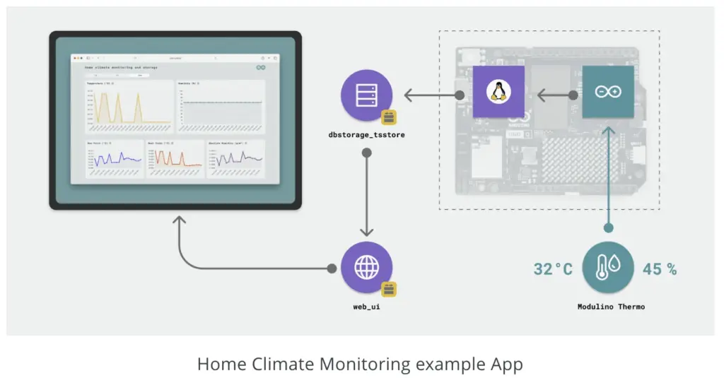 必要ならLANに載せ、他端末からWeb UI/RESTで参照。(docs.arduino.cc)