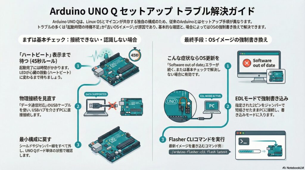 先ほどの英語版と同様、Arduino UNO Qのセットアップに関する解説ですが、日本版のNotebookLMでは、日本の文化や生活習慣に合わせたユニークな「超訳」や「例え話」が多数盛り込まれています。